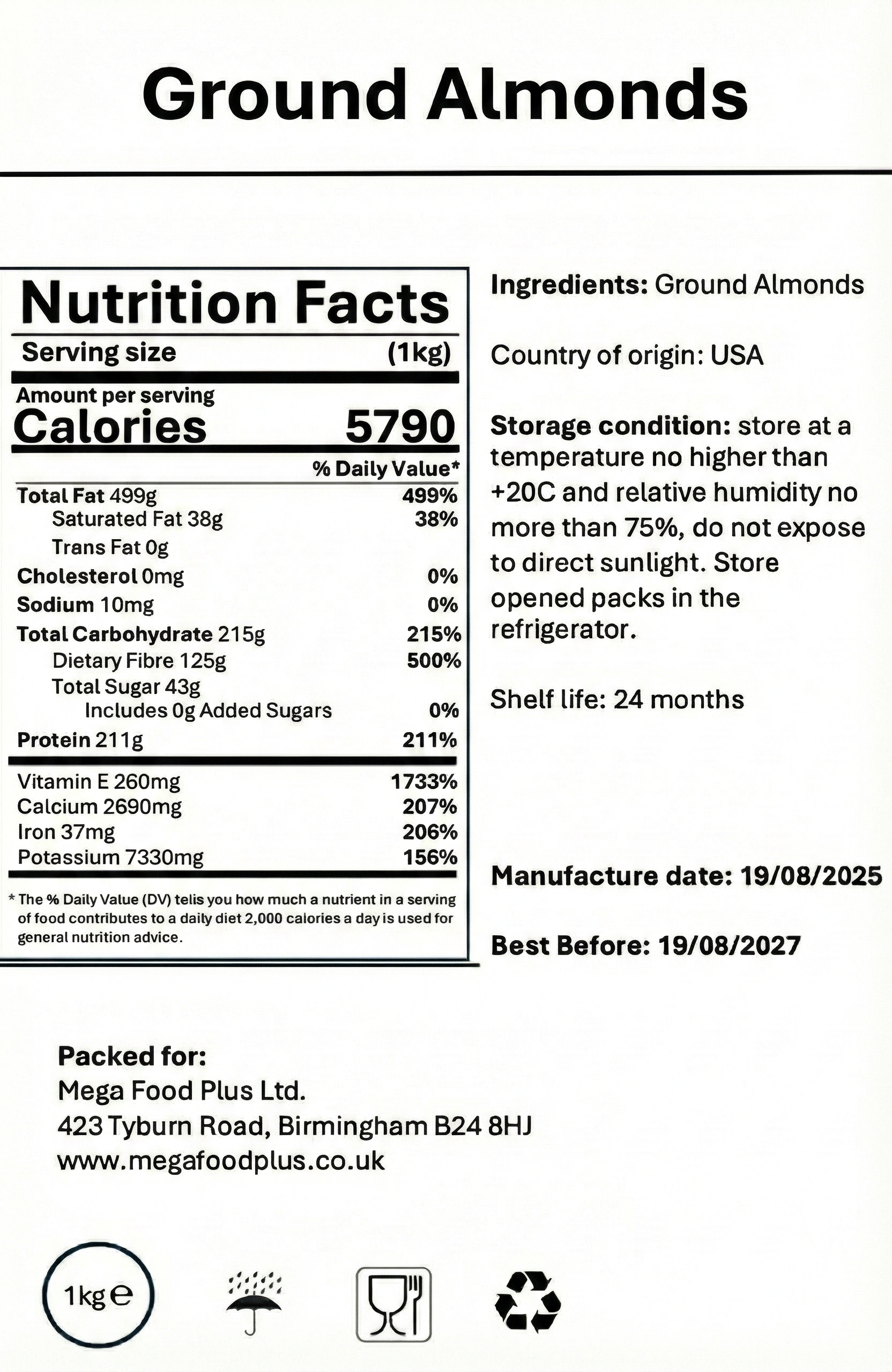 Create moist, nutty, and delicious bakes with our Premium Ground Almonds. Milled from high-quality, blanched whole almonds (skins removed), this product offers a fine, flour-like consistency and a sweet, delicate flavour profile.