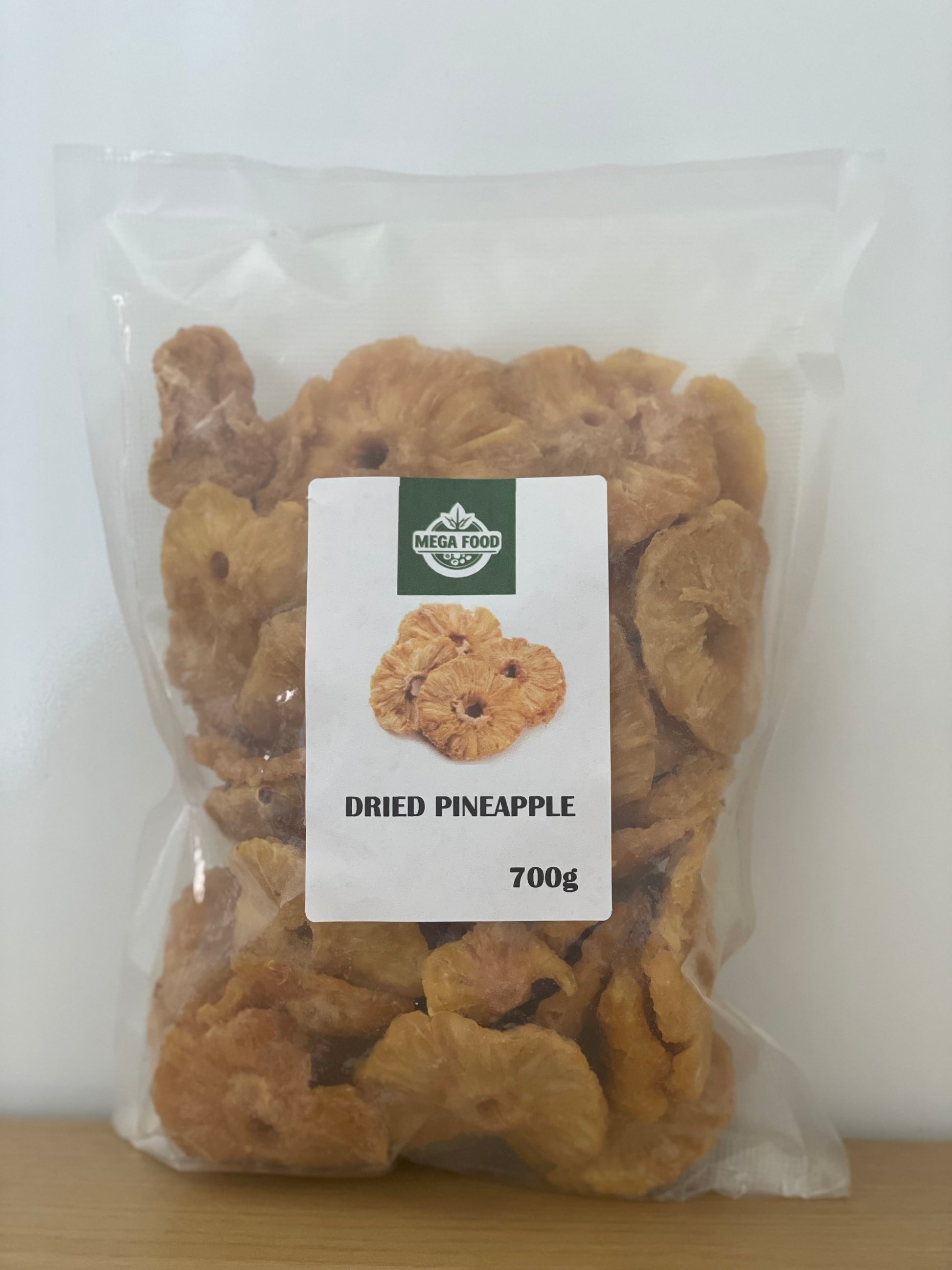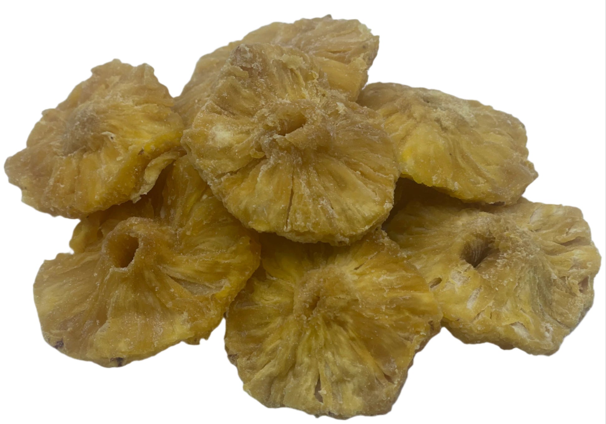 Dried pineapple rings are made from fresh, ripe pineapples that are carefully sliced and gently dried to retain their natural tropical sweetness and chewy texture. This product contains less than 5% sugar, enhancing the fruit’s flavour while maintaining its natural goodness. It is perfect for snacking, adding to cereals, smoothies, and baked goods, or incorporating into a healthy diet.